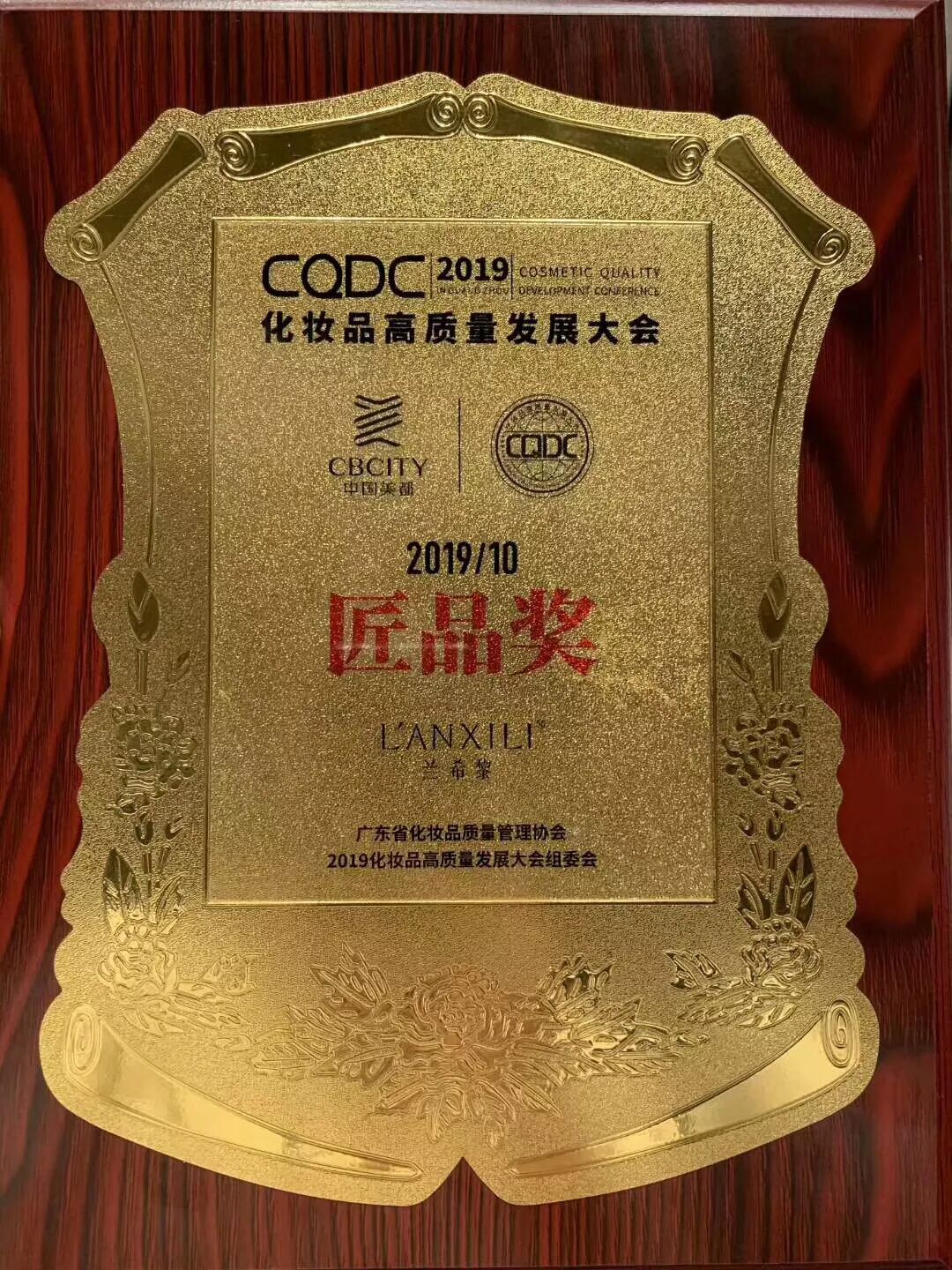 兰希黎荣获2019年化妆品高质量大会“匠品奖”